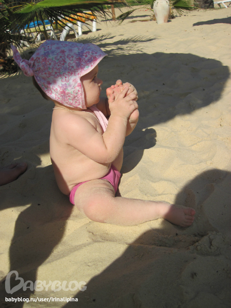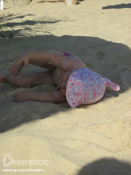 а вот днем спала хорошо, в 11 и в 2 по местному времени. муж в основном ее укладывал, ходил с ней в коляске по территории, а потом сидел в холле в инете, пока она спала=) а я загорала. иногда второй сон мы спали втроем, тогда она могла и 2-2,5 часа проспать, вообще клево. дома столько не спит.
