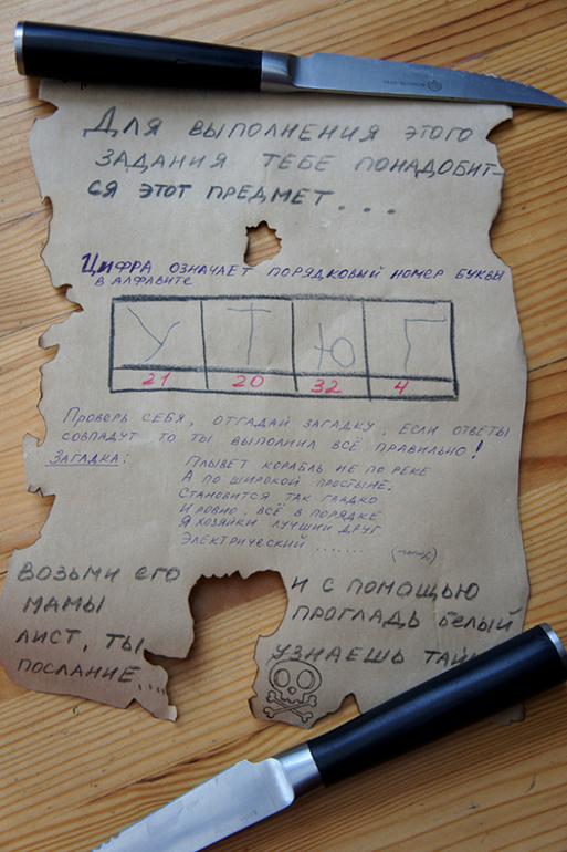 С помощью утюга мы достаточно долго проглаживали белый лист, но буквы на нм проявляться не желали.