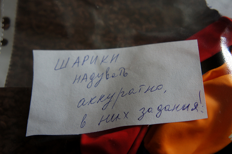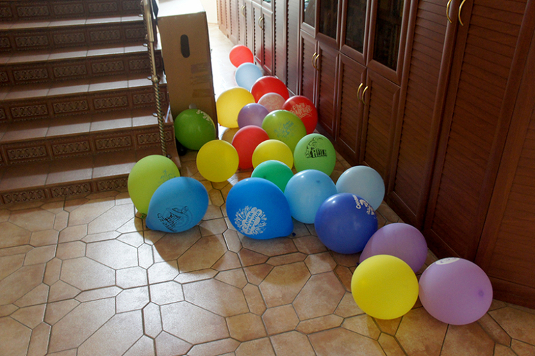 Надула шарики с заданиями и замаскировала их перемешав с нашими, оставшимися с дня рождения.