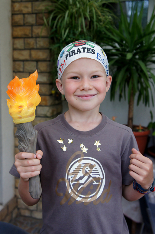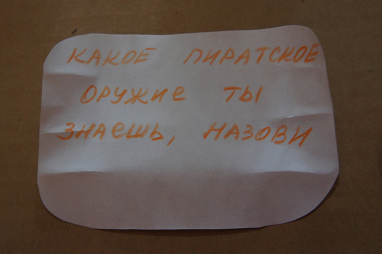 "Чем пират освещал дорогу ночью? Найди буквы и сложи слово."