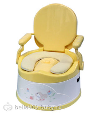 у нас такой нам нравится) сзади достается емкость куда малыш дела делает ее моешь и все, ненадо весь горшок таскать)