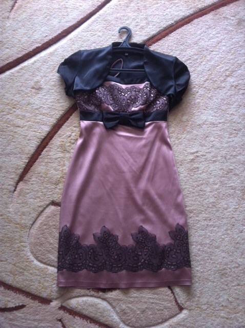 8. Коктейльное платье+болеро, р.42, но на 40 смотрится тоже хорошо. Покупалось на торжество и одевалось 1 раз, есть небольшой ньюанс, на одной бретельке сломалось пластиковое крепление и т.к. Это все произошло на самом торжестве было все это дело оперативно пришито какими нашлось нитками, можно конечно перешить все более аккуратно. Вторая бретелька исправна, когда сверху одевается болеро, совершенно ничего не видно. В остальном все в идеале. Цена за комплект 1500р.