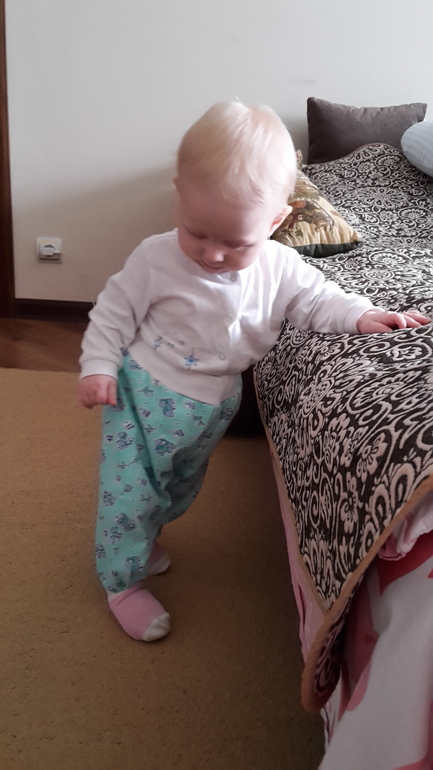Вот посадила его (не ложиться уже с 5 месяцев ) в кроватку, а он тут-же хватается за бортики кроватки и встает. И придумал еще ходить в кроватке. Посажу на пол играть, а он ползет к дивану, хватается за покрывало и встает. Вот научился он вставать и теперь везде и при любой возможность встает!!!