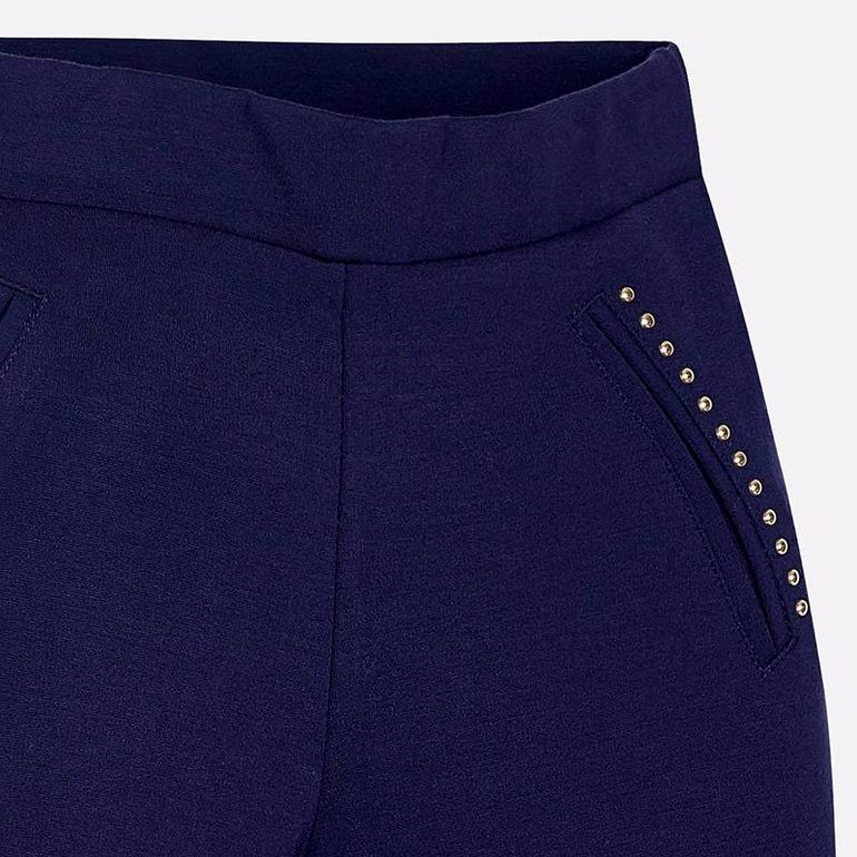 Брюки-легинсы из плотного вискозного трикотажа. Передние карманы-обманки со стразами. Пояс с регулировкой. Коллекция Mayoral Chic. Цвет marino (синий)