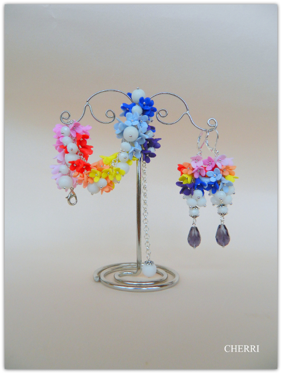 Серьги - Нежные гроздочки из роз и "сиреньки"