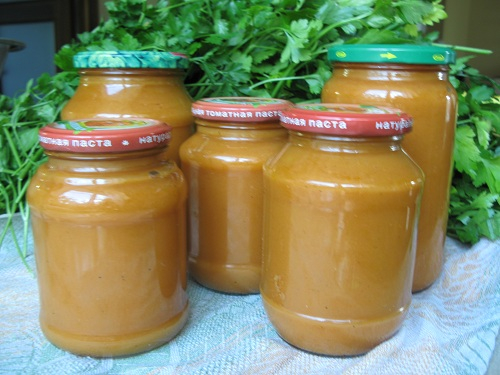 Накладываем в банки ( у меня в ход уходят и банки из под томатной пасты) и закручиваем. Переворачиваем, накрываем чем то теплым и оставляем на 1-1,5 часа.