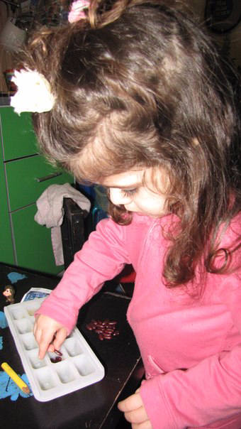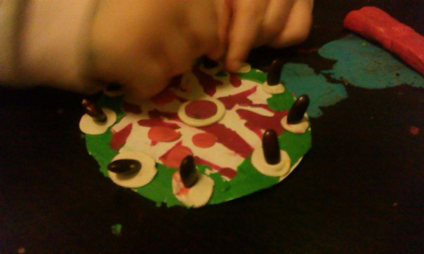 раздавливание горошинки пластилина в блинчик. Ну не нравится ребенку горох