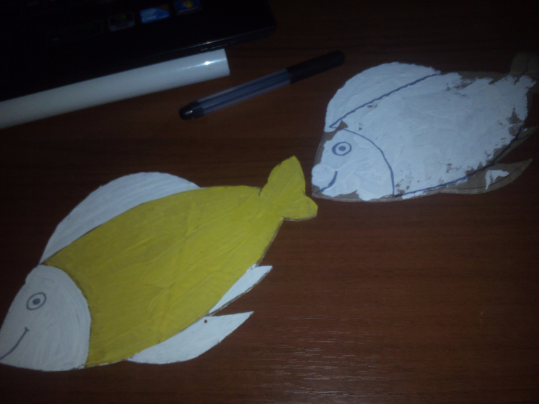 Т.е. Кире не столько весело клеить, сколько отрывать. На фото поделка после 10