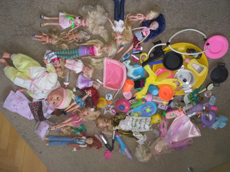 Есть фирменные куклы. Но у некоторых свалялись волосы и присутствуют следы фломастера. Есть в очень хорошем состоянии.