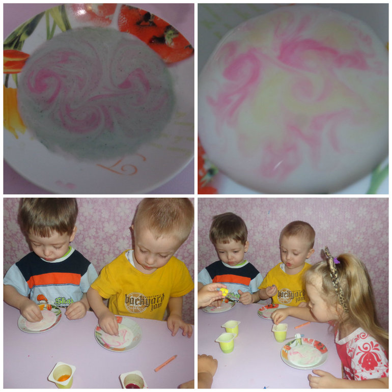 Рисовали красками на молоке, очень понравилось, надо в следующий раз попробовать на сливках.