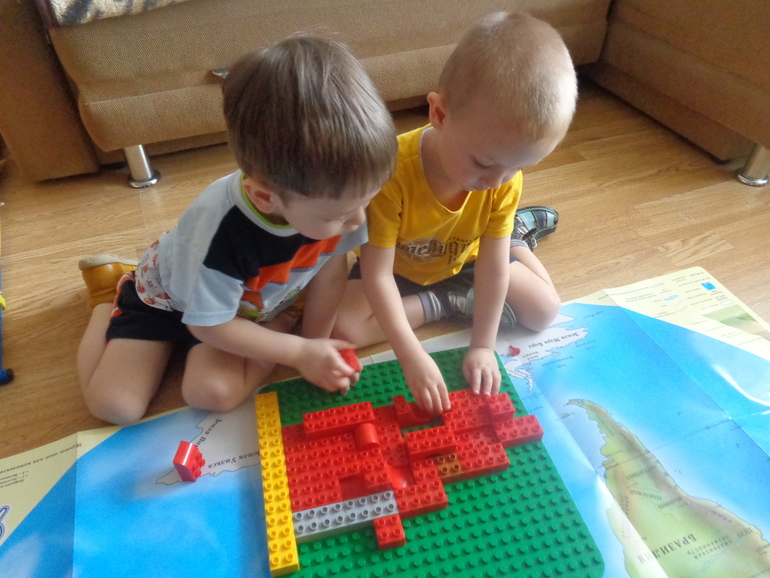 Поговорили о том, что на Камчатке много гор, строим п-ов с помощью лего, обращаем внимание на то что местность горная.