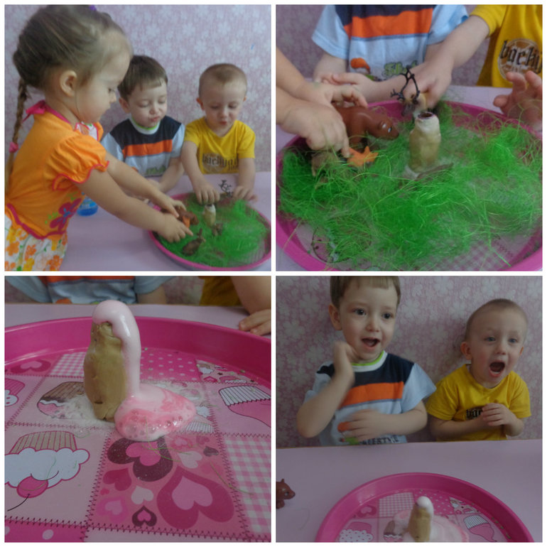 Играем с сенсорной коробкой. Потом запускали наш небольшой вулкан.