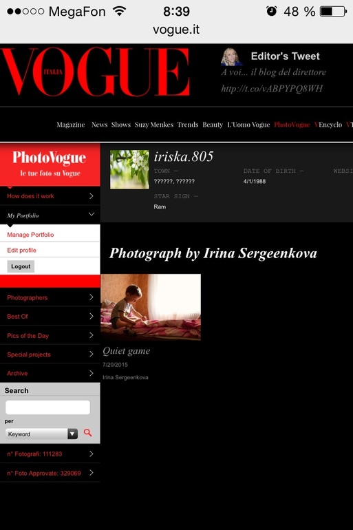 Наконец - то!!! Первая фотография! Я конечно, не так часто пробовала, но все равно никогда не брали мои фотографии!!! А тут отправила вчера и ...... УРА
