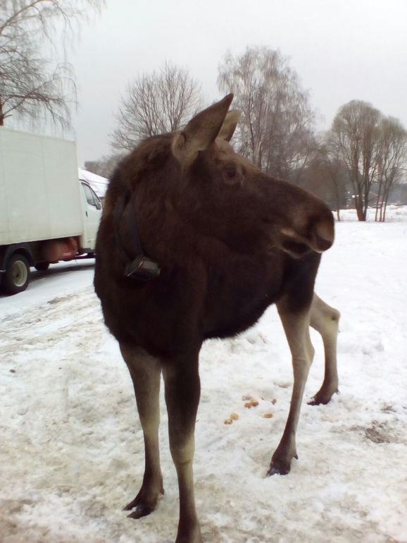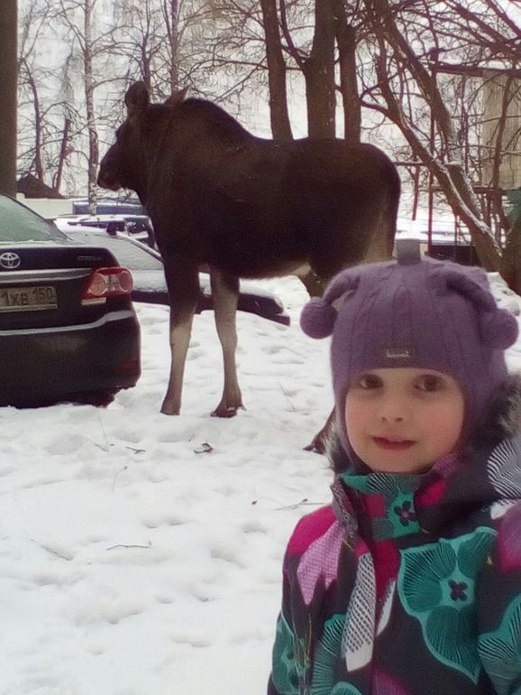 Пока младшая лежала дома с температурой, старшую отправили гулять с папой. Они пошли в лес, благо он начинается прямо за окном☺. И повстречали там вот такое чудо. Этот "малыш" не боялся подходить к людям и с удовольствием облизывал фары близстоящих машин☺. Варька сказала, что он очень похож на верблюда (из-за горба на спине) и сфоткалась на память, но близко подходить побоялась. Зато теперь ребенок понял, почему лес называется "Лосиный остров".