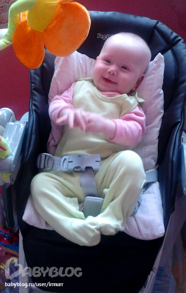 Вот и нам 5! Мы уже очень большие и умненькие!У нас много побед!К пяти месяцам мы научились еще больше держать голову, сама вытягивает шею и подтягивается, хочет сесть, любит тусоваться в стульчике Татамии, внимательно смотрит в рот, когда мы едим (так ее становится жалко), и вообще умненькими глазками смотрим в глаза, разговариваем глазами))) переворачиваться на животик, а на спину даже пока не пытаемся, пытаемся ползти, подтягиваем попку но буксуем носом) смеяться в голос,сама берет игрушки, перекладывает их с ручки в ручку, кидает их и смотрит куда они падают, любит сосать пеленки свои, заматываться в них и запутываться))) потрошить из упаковки и разбрасывать свои мэррисы вокруг себя, а еще мы безумно любим дергать всех за волосы и откручивать всем нос. Все обсолютно все -в рот! маленький исследователь! Еще мы как вампиреныши иногда от радости (или от злости тоже бывает) впиваемся в шею маме или тети Мадины и кусаем своим беззубым ротиком)Ай ти сладкий!
