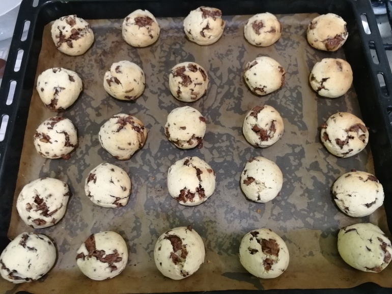 Опять мы печем с внучкой. Опять с шоколадом. Ну, любим мы его, что ж поделать, терпите :)))