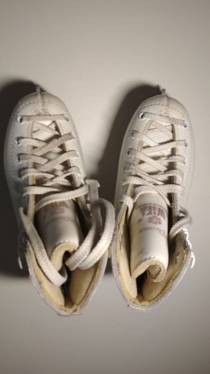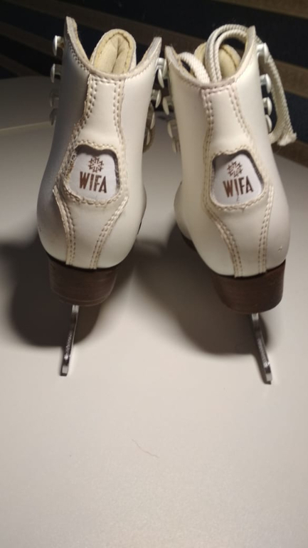 Фигурные коньки приобретались для первых тренировок начинающей фигуристки на крытом катке. Были куплены за 13000 в магазине "Фигурист". Лезвия MARK IV ( не ржавые). Ботинок- натуральная кожа, производство Австрия. Коньки супер удобные, внутри мягкие. Ребенку в них кататься было очень комфортно. Откатали всего половину сезона, так как нога у дочки быстро выросла. Сейчас данная модель WIFA Prima стоит от 15900 в магазине. ЦЕНА 8000 р. Сделаю скидку и небольшой бонус в виде подарка!