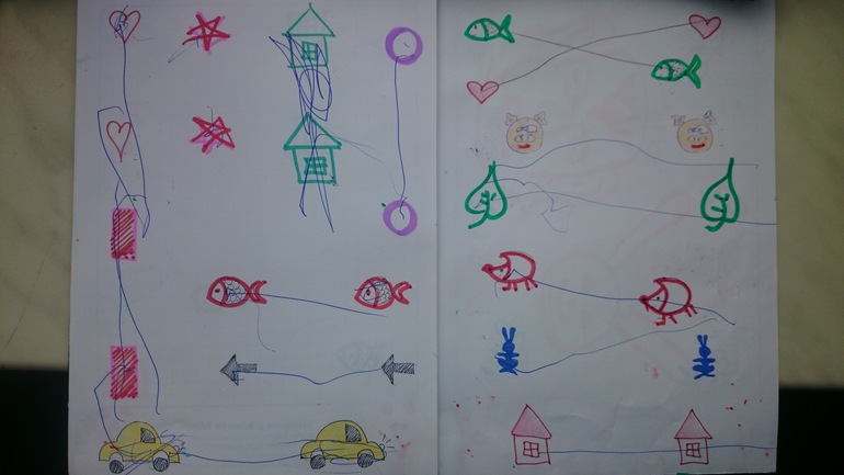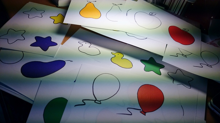 Такие же заготовки для раскрашивания карандашами. (Ночью, видно, лампа мерцает)