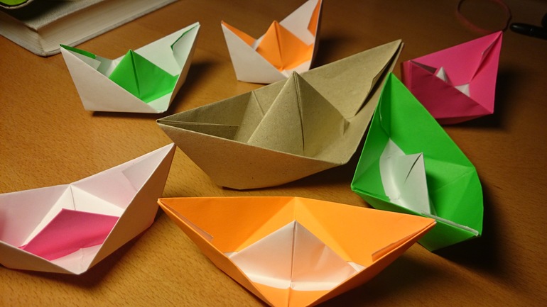 Оригами. Не впечатлило Гришу совсем. Запускали кораблики в ванной, ручей не нашли
