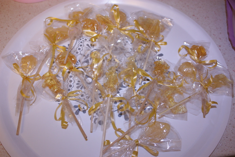 Решила сделать леденцы (планировала в сад к ДР дочки отнести, но в итоге съела она все постепенно дома). Ох уж и намучилась я с ними, честное слово, но вот, что получилось в итоге: