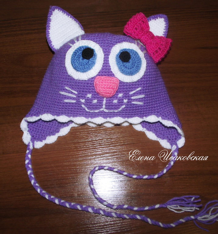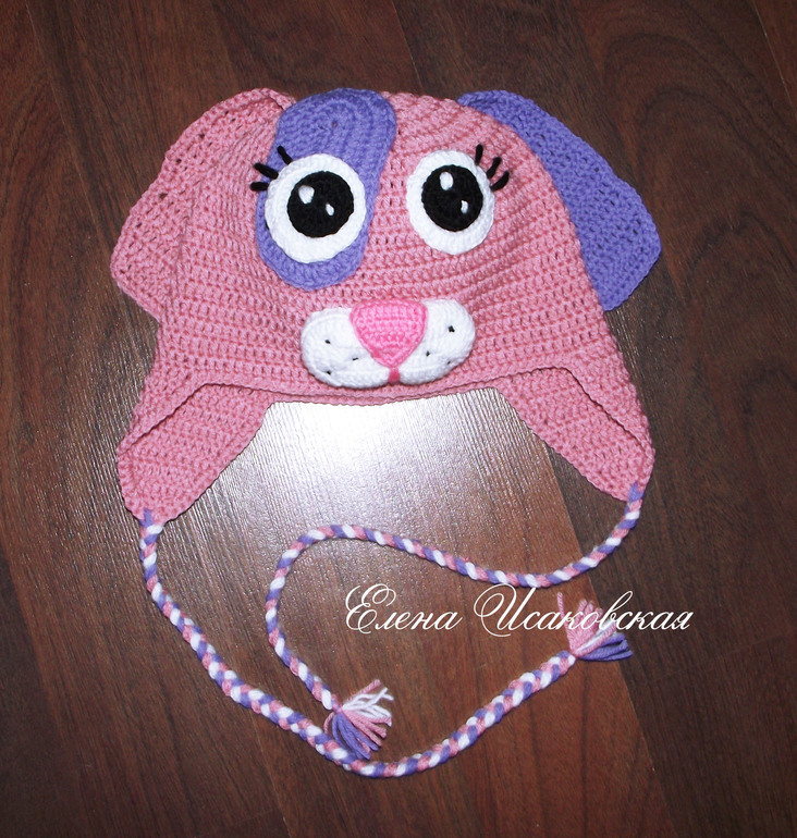 Связалась вот такая шапочка-собачка. Пряжа Кроха.