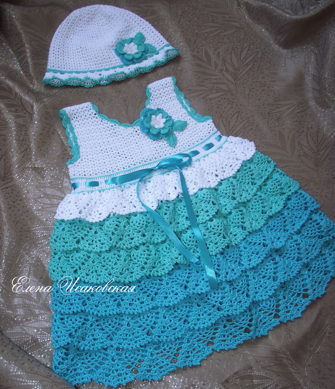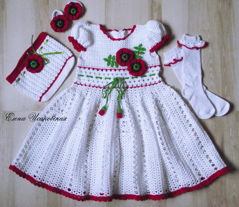 Платье, шляпка, бусы и гольфы, связаны из пряжи Пехорка Успешная, и Коко.