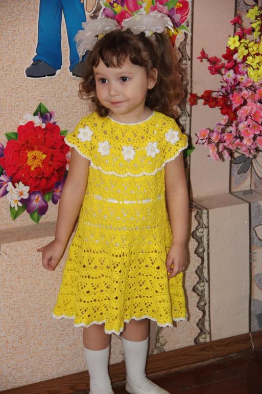 Связался вот такой комплект: платье, шапочка, сумочка, бусы, гольфы и резинки для волос. Использовала пряжу Софт Коттон (желтая) , и Коко.