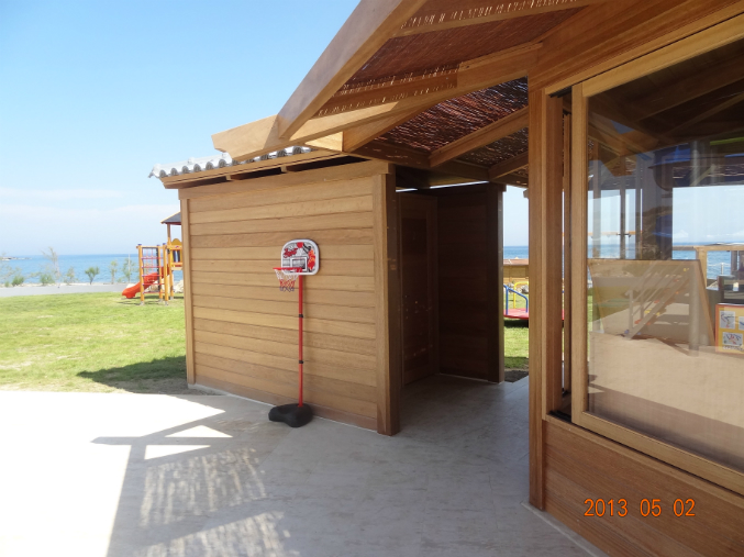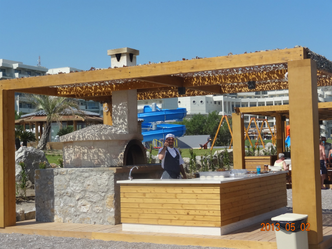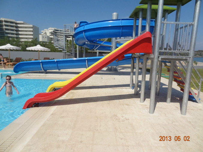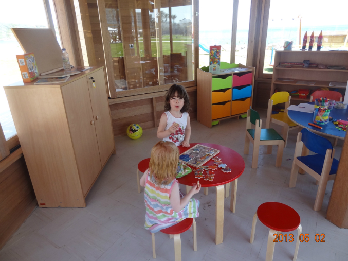 Далее для детей... ну стульчики, кроватки,горшки, чайники это все есть, это все вам в номер принесут. Миниклуб.... небольшой "шалашик" рядом с бассейнами, судя по всему коднея там нет. Стоит под солнцепеком, честно говоря, я с трудом представляю температуру внутри летом:) Если в начале мая там было уже весьма жарко... может я конечно не доглядела кондей, но сомневаюсь. Обстановочка внутри нормально-обычная..игрушечки, рисовалочки, стульчики и столики. Рускоязычного персонала в мини клубе нет.