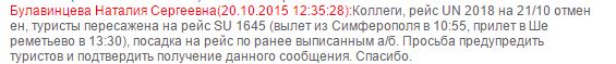 Ситуация 2: Туристка купила тур в Крым задолго до начала бучи. Уже улетела. Возврат завтра. Опять же... я просто успокоила туристов и ждала. Сегодня получила сообщение
