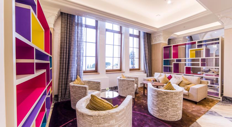 Просторные и элегантные двухуровневые номера категории "люкс", расположенные в главном здании отеля, подарят вам незабываемый вид на Черное море, бассейн и парк. Просторные ванные комнаты, расположенные на обоих этажах люкса, делают его идеальным местом для пребывания семьи с детьми, останавливающейся на длительное время.