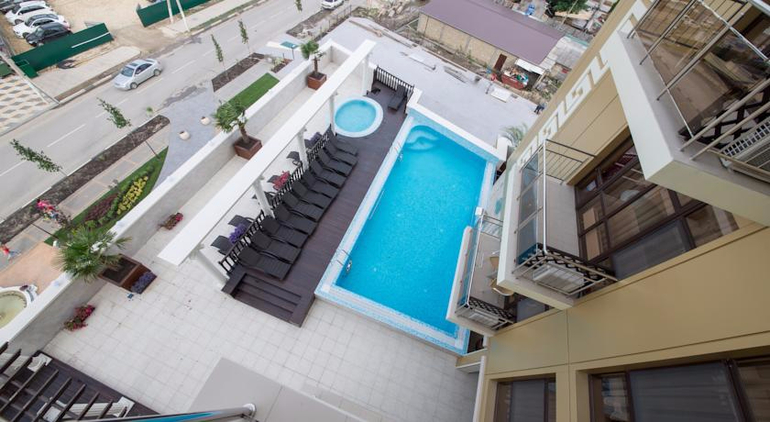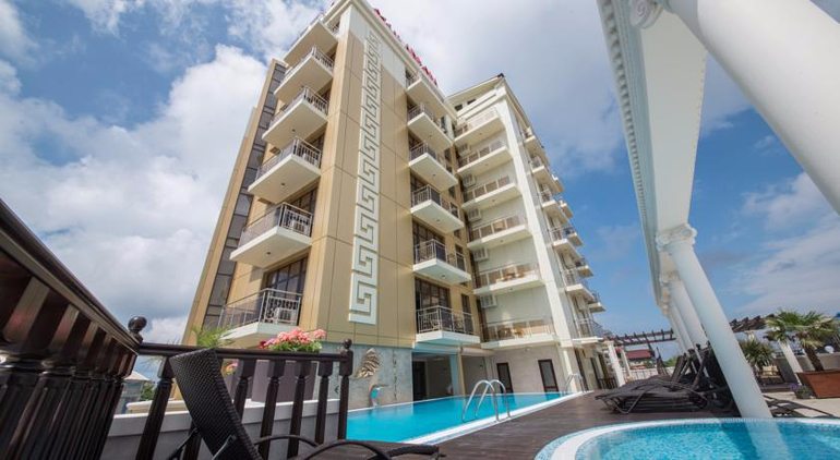 Отель городской, новый. Состояние номеров соответсвует картинкам на сайте. Чисто, уютно. Персонал доброжелателен. Бесплатная парковка и вай-фай. Кормят очень вкусно- была с 2х летним ребенком- еда домашняя, ел прекрасно. Очередей в столовой не было. Иногда были паузы с посудой, но минутные. Первое впечатление от отеля- вполне себе приличная Европейская городская 4ка. Или весьма добротная 3ка. Анимация- с переменным успехом. Территория крошечная: детская площадка лепится вплотную к проезжей части. Нет пандуса для колясок- вот это минус. Летом гостиница напоминает детский сад. Чайники в номерах дают в аренду! Это вообще смешно. Для гостиницы за 5500 руб/сутки. Лифт непредсказуемый и медленный. До приличного пляжа( не Центрального) 15-20 мин пешком. Контингент отдыхающих- очень приличный, нет "тагила"