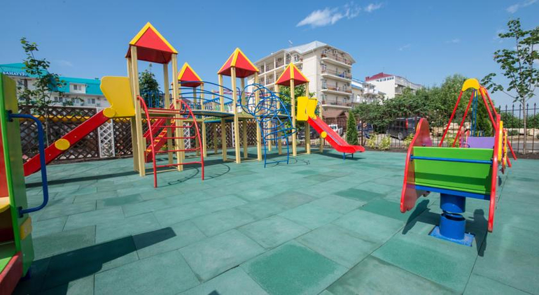 Жили на втором этаже,очень удобно:выходишь из номера-и сразу в бассейн.Бассейн хорош,не хватает зонтиков,но в обеденное время его накрывает тень и очень приятно купаться. Спасались в нем, т.к. море уже зацвело. Детская анимация есть,но в силу маленького возраста ребенка оценить не смогли)На территории есть детская площадка с горками-лазилками.