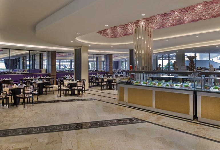 • В главном ресторане с богатым шведским столом подаются завтрак, обед и ужин (Завтрак: 07.00-10.00, поздний завтрак: 10:00-11:00, обед: 13:00-15:00, ужин: 19:00-21:30)
