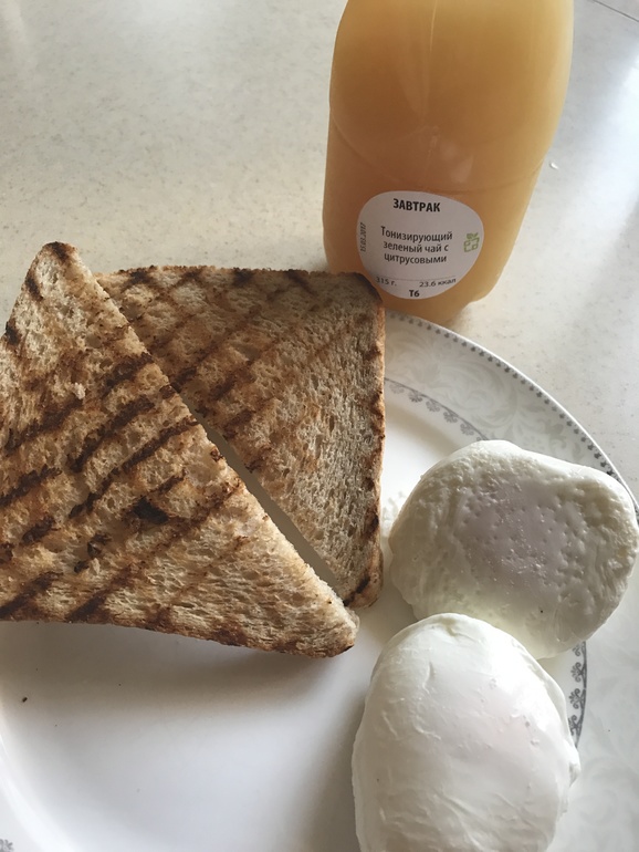 яйки-пашот, тосты, тонизирующий зеленый чай с цитрусовыми