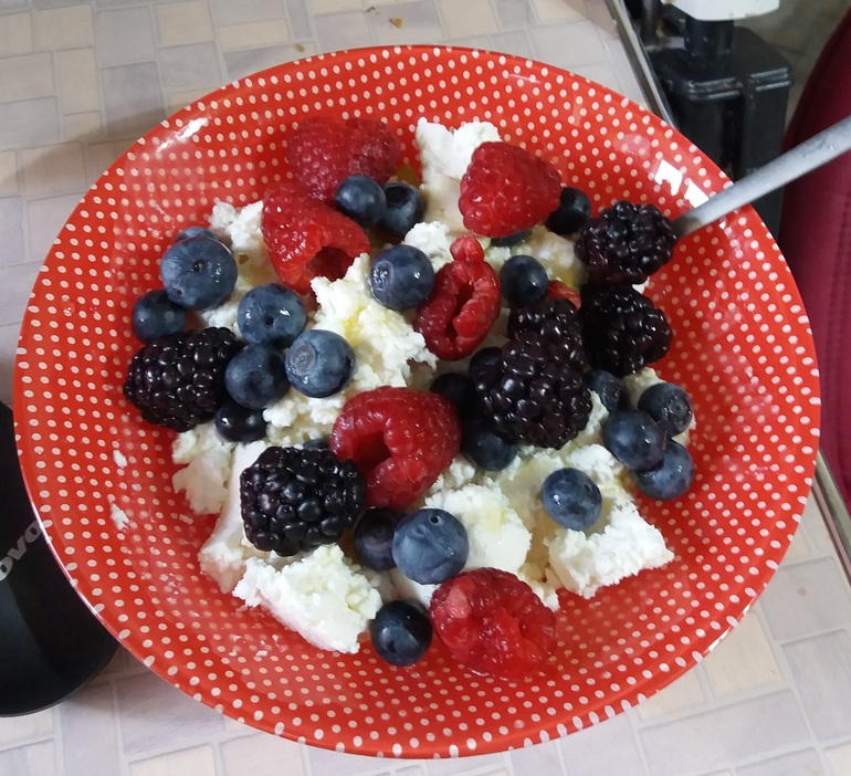 Мне еще, когда творог привозят , дают в маленьком лоточке сироп клубгичный для поливы творога и ягод сверху поменьше
