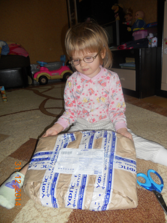 Посылочка пришла аж 31декабря, я как на почту сбегала,сразу же ее открыли))
