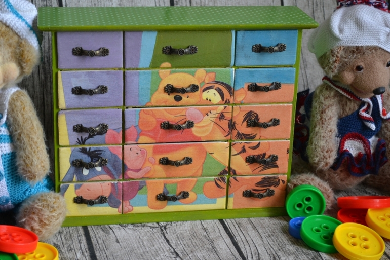 случайно нашла эту саплфеточку у себя)и сделался комодик- для деток с кучей ящичков!!