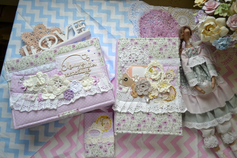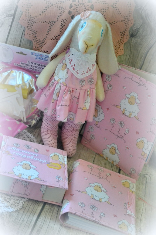 В набор входит--Мамины Заметки-папка на первые документы-книга пожеланий и для мамочки-блокнот -обложка на паспорт)))