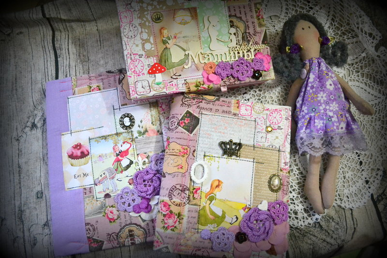 сделала такой набор на тему Алисы- в фиолетовых тонах!