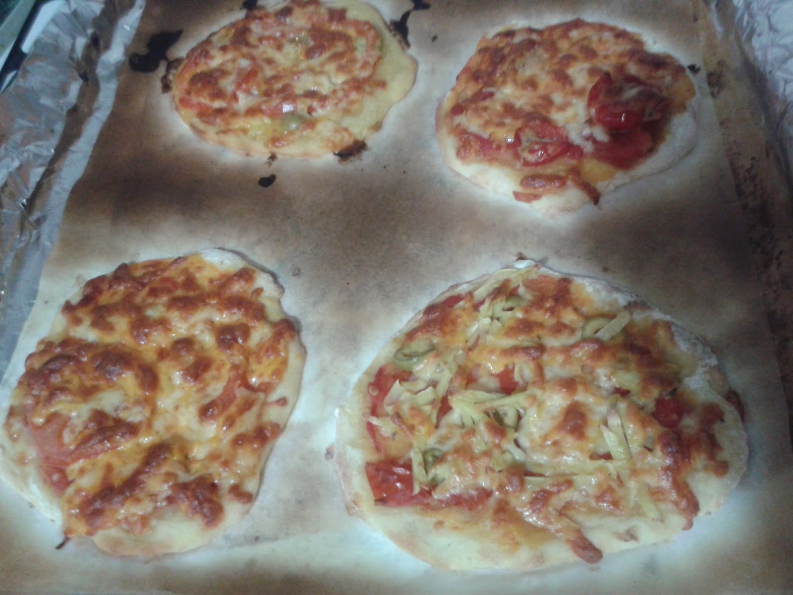 Когда тесто взошло, отщипываем по кусочку. У меня 12 пиццетти выходит. Делаем шарик и расплющиваем. Далее пицца-соус, начинка и сыр. И в разогретую на 15 минут при 200 градусах.