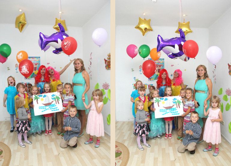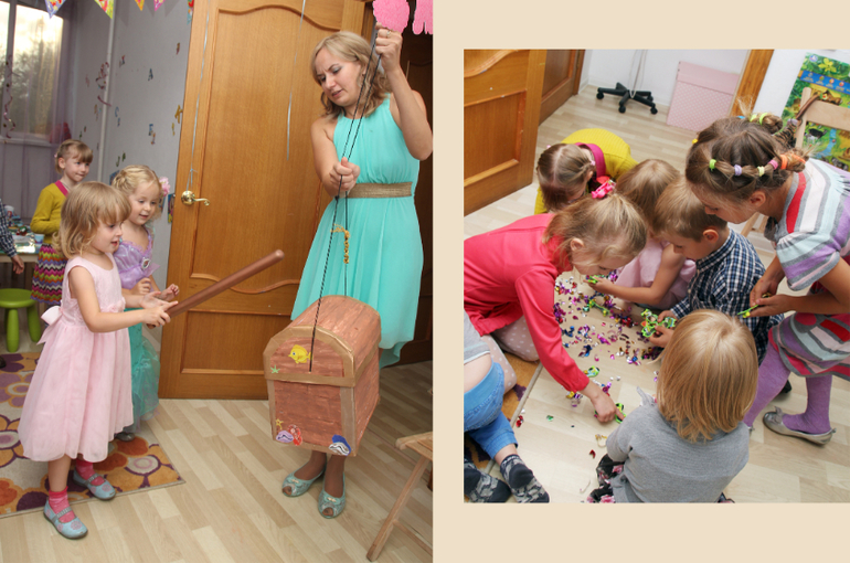 Сначала думала написать, что для Лизы праздник оказался не праздником. Она проплакала в коридоре первую половину праздника (ей подарки не дарят и свечи не дают зажигать). Но потом, волшебница Саша внесла в комнату сундучок с подарками и настроение у Лизы улучшилось... всего-то нужно было что-то стукнуть