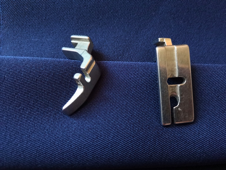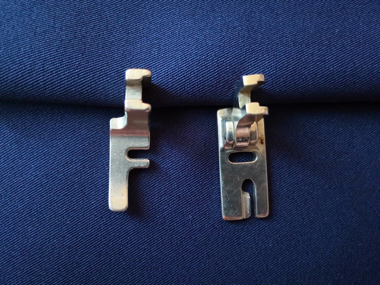 Мне достались 4 лапки, две из которых никак не могу определить для чего они нужны. Посмотрела много видео по этой теме, но точно такие мне не встретились. Левая похожа на лапку для молний, но тогда непонятно зачем там отверстие в перемычке и ложбинка снизу, а правая похожа на лапку cording foot, но всего для одного шнура.