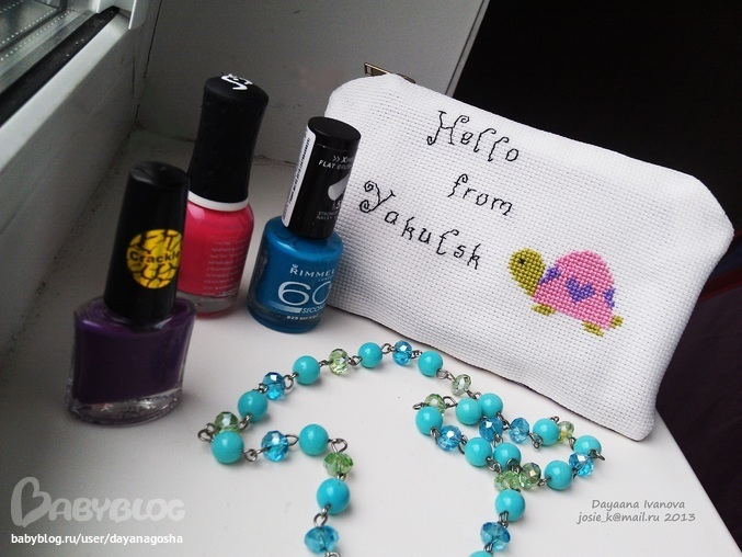 И вот на память я решила ей сделать маленькую косметичку/кошелечек/чехол для айпода, сама незнаю что это) можно использовать как душа пожелает)) конечно же я изобразила черепашку, и надпись Привет из Якутска:)