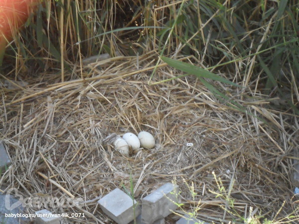 видать попали она на них уже не сидит.И вот приходим мы с мамой и Полиной к озеру,прлавает только она и утки,где он никто не знает,в гнезде 3 яйца,1 разбитое и вокруг валяется плитка!Ну не скоты?????