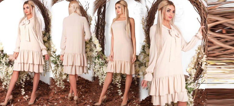 Комплект состоит из сарафана и туники. Сарафан на тонких нерегулируемых бретелях. Втачной рукав туники собран на резинку по низу. Пышный волан оформляет низ и сарафана, и туники.