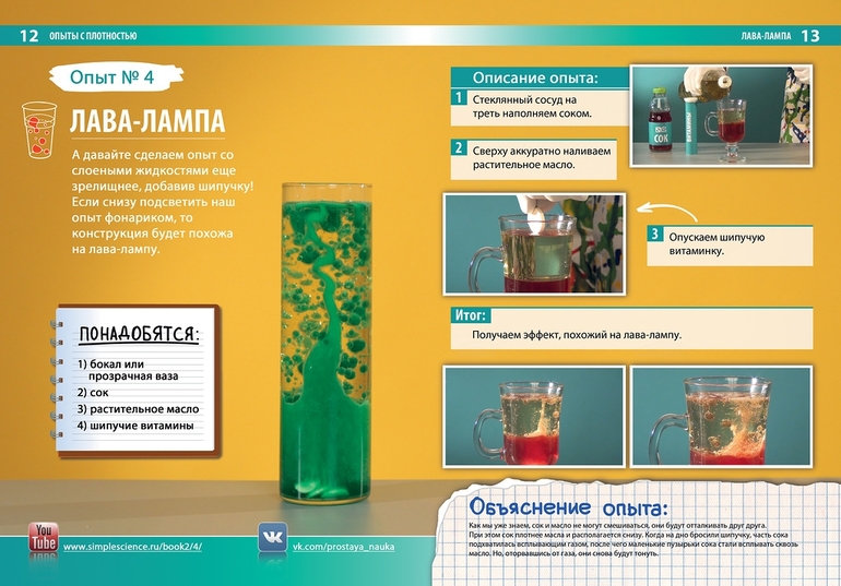 Очень красочный опыт, наглядно показывающий разницу в плотности жидкостей: