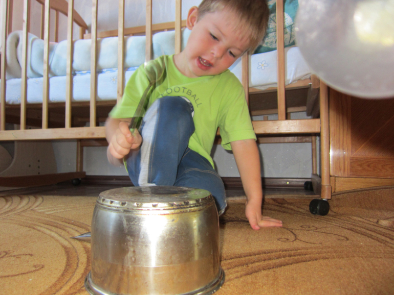 Покушали, можно и повеселиться. Открывали по очереди карточки с предметами, обсуждали, для чего их используют, а потом придумывали, как можно их использовать в качестве музыкальных инструментов. У Максима, в основном, все использовалось, как барабан)))
