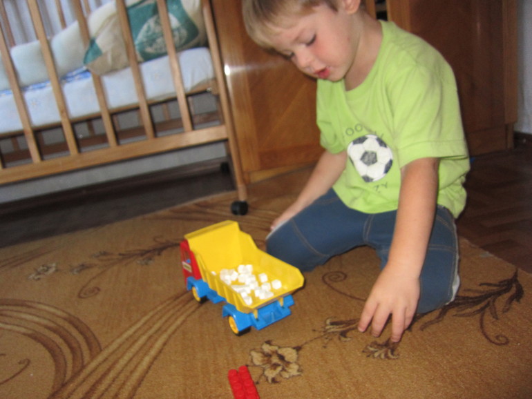 Сначала поиграли в "Да-Нетки". Пока и вопросы задаю и отвечаю на них одна я, но верю, что Максим научится тоже правильно задавать вопросы.