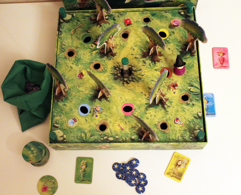 Вот такой красотой нас удивил производитель). Игровое поле очень эффектное: трёхмерный лес, норы гномов и лужи...