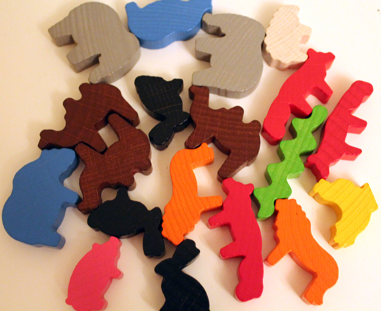 Надо сказать, игра очень азартная! Сначала сдаём 10 карт. Изображённых на них животных нам предстоит уместить в вырубку плота. Голосуем: возможно это или нет. Если да, то прибавляем ещё карту. И так пока не решим, что больше зверей не уместить на плот. Далее переворачиваем песочные часы и за отведённое время стараемся справиться с задачей.